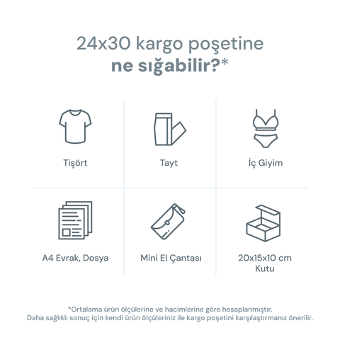 Kargo poşetlerimizde üretimden kaynaklı olarak 2 (±) cm kadar farklılık olabilir.