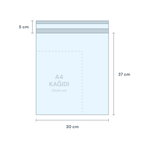 30x37+5 cm ölçüsünde gri renkli, cepli ve kendinden yapışkanlı (bantlı) kargo poşetidir.