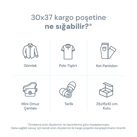 Kargo poşetlerimizde üretimden kaynaklı olarak 2 (±) cm kadar farklılık olabilir.