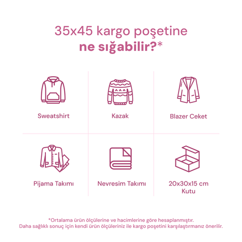 Kargo poşetlerinde üretimden kaynaklı olarak 2 (±) cm kadar farklılık olabilir.