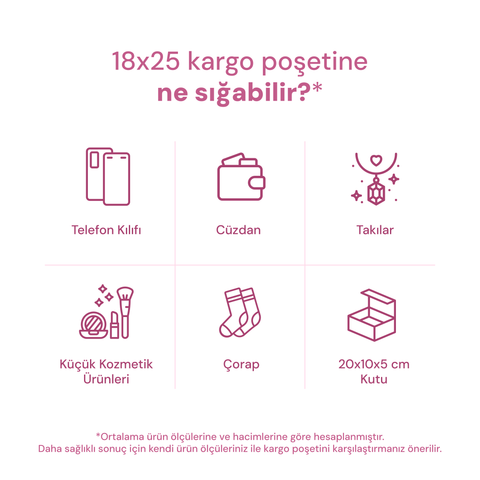 Kargo poşetlerinde üretimden kaynalı olarak 2 (±) cm kadar farklılık olabilir.