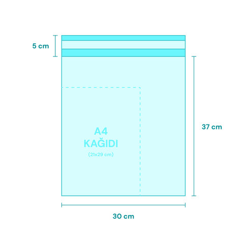 Cepsiz Turkuaz Kargo Poşeti 30x37+5 cm - 100 Adet