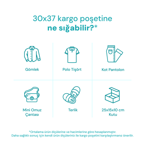 Kargo poşetlerinde üretimden kaynaklı olarak 2 (±) cm kadar farklılık olabilir.
