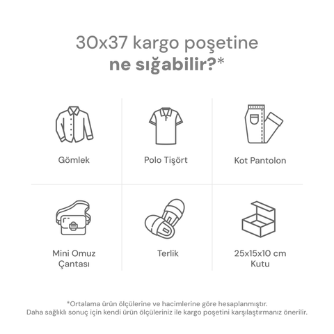 Kargo poşetlerimizde üretimden kaynaklı olarak 2 (±) cm kadar farklılık olabilir.